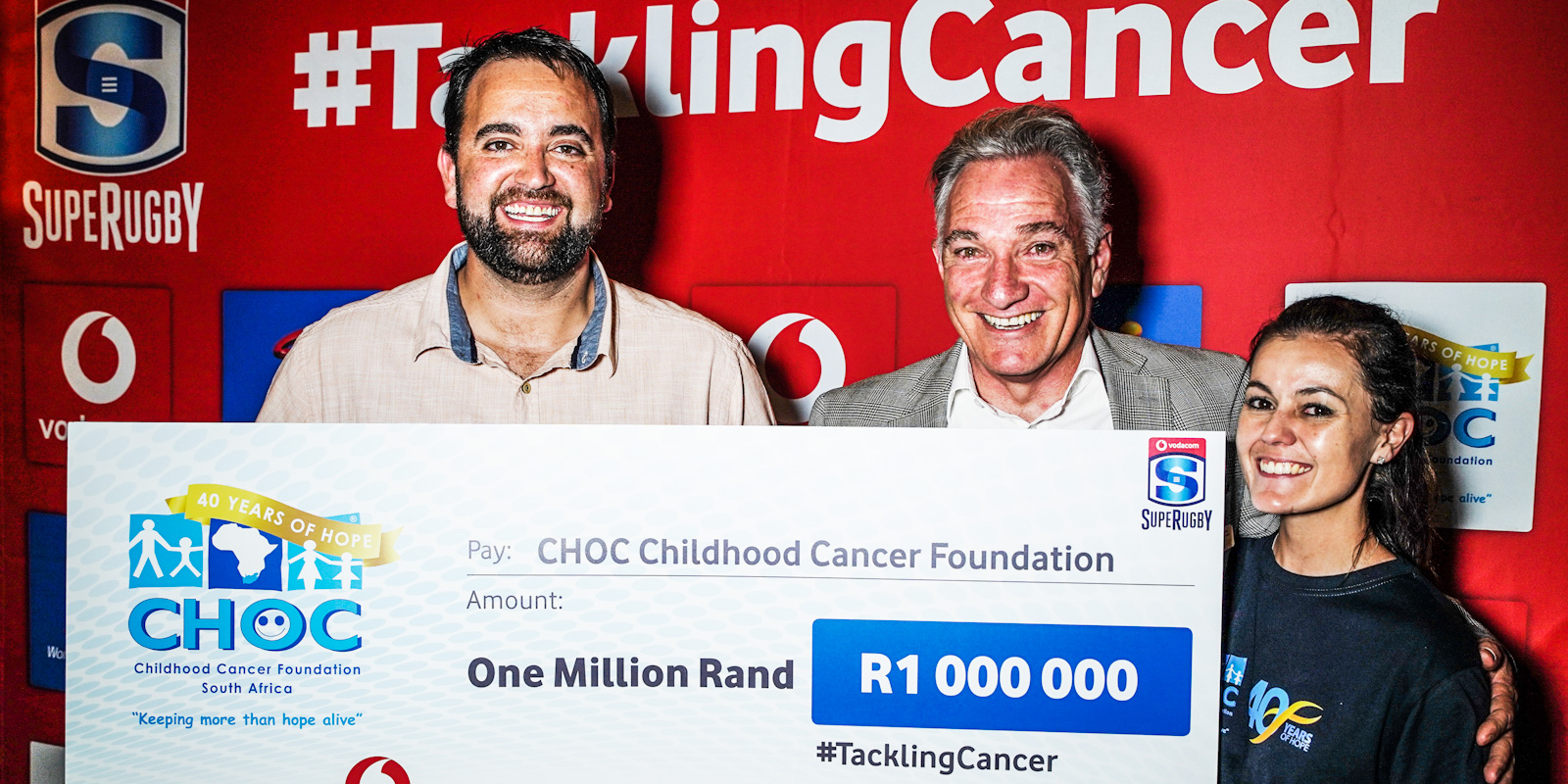 On the fields, the “super heroes” of the South African teams tackled their hearts out as Vodacom and SuperSport together donated R100 for every tackle made by a South African player during the season to CHOC.