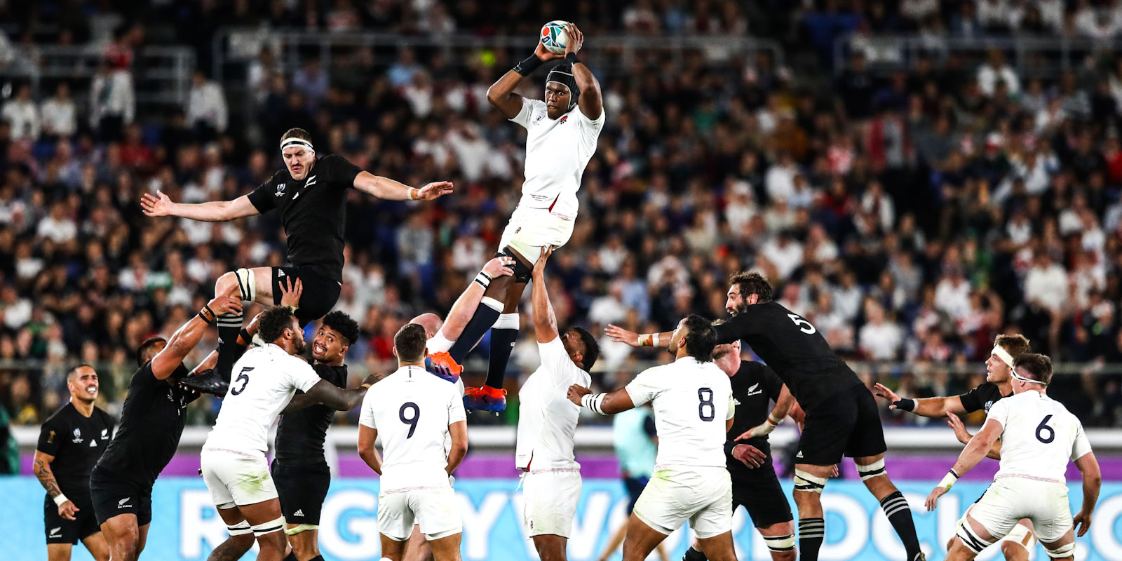 There was also a try for Damian de Allende (centre) as the Boks confirmed a remarkable revival for the depths of 2016 and 2017 by emulating the teams of 1995 and 2007 to reach the Rugby World Cup final.