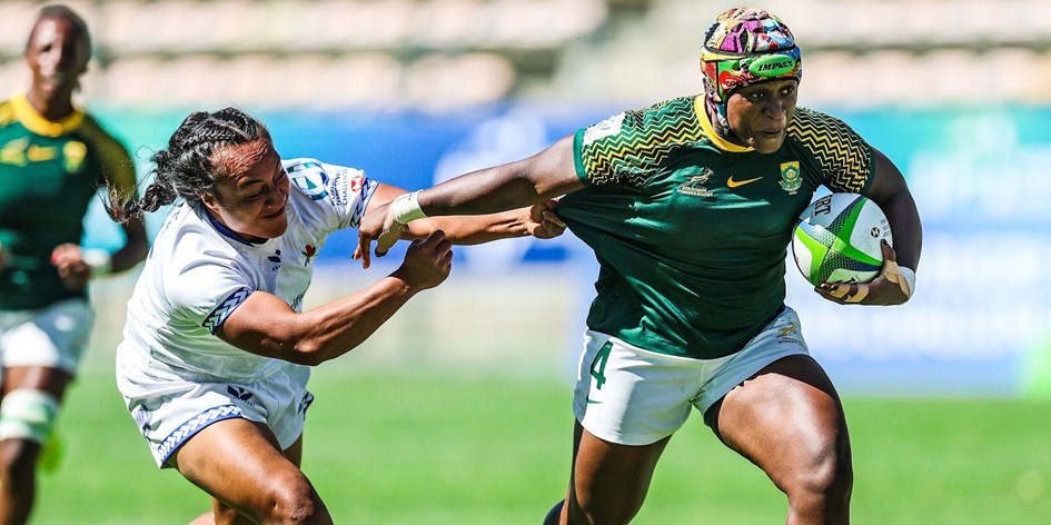 SA – Tries: Rights Mkhari, Nadine Roos (2), Zintle Mpupha (2), Shiniqwa Lamprecht, Ayanda Malinga. Conversions: Roos (4), Alicia Willemse.