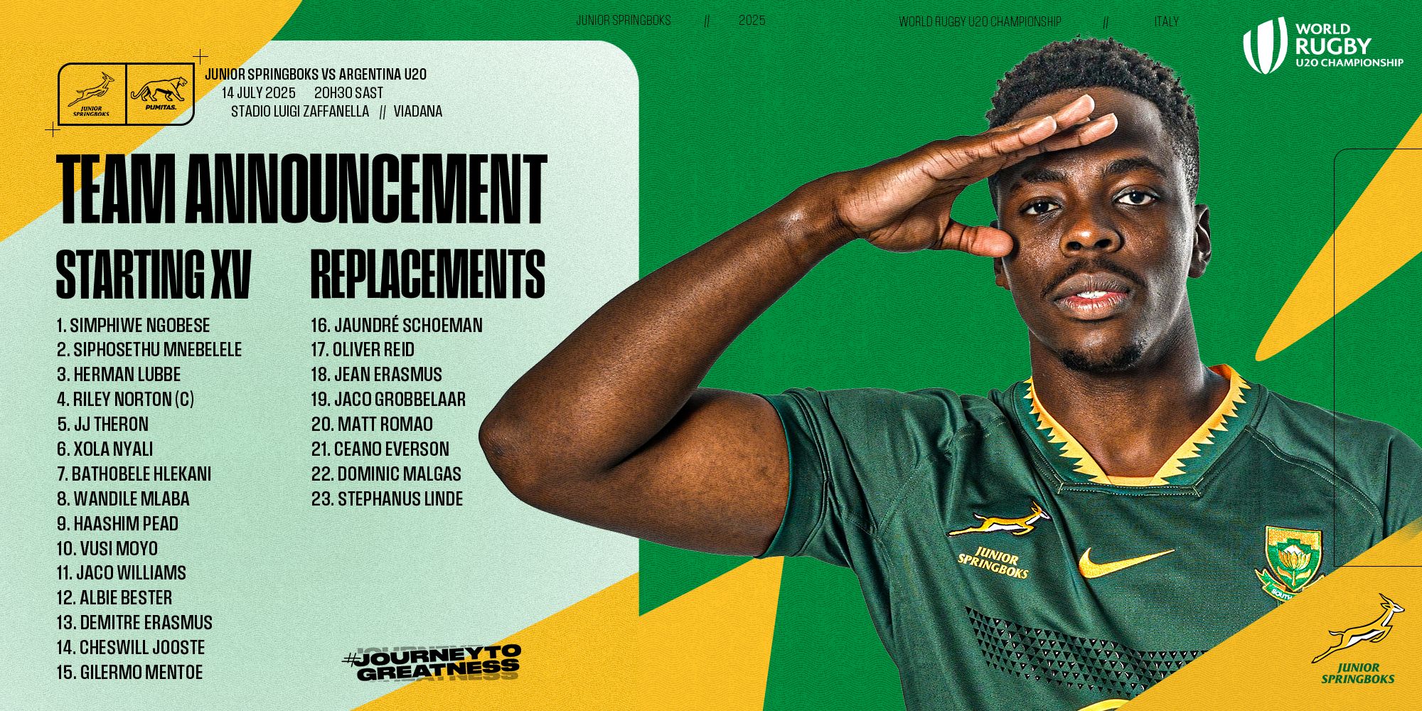As a result, his provincial teammate Potgieter has been called up to the SA Schools squad, while the Bulls’ Elwin Janse van Vuuren (Affies) has been named in the SA Schools ‘A’ team.