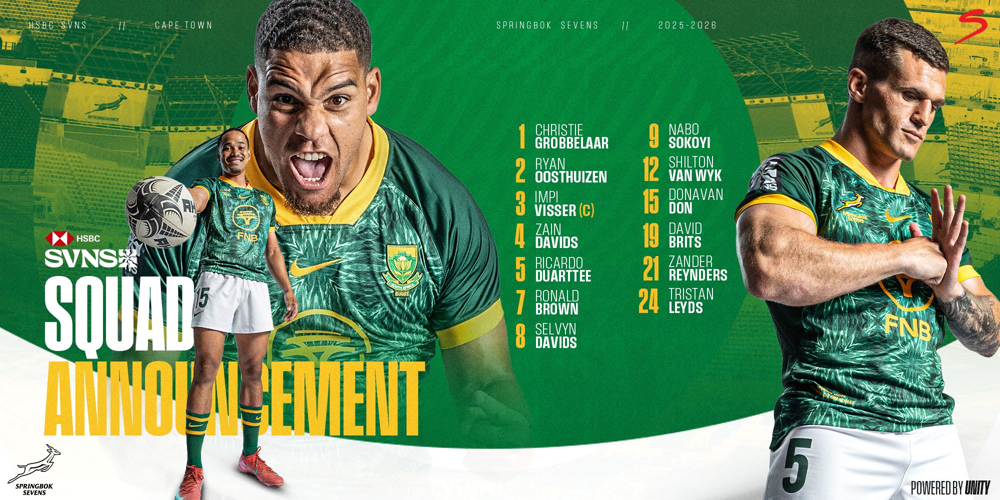 Uncapped utility backline player Nabo Sokoyi has been included in the Springbok Sevens squad for the HSBC SVNS Cape Town at DHL Stadium, where the Blitzboks will aim to defend their crown in the second round of the season.